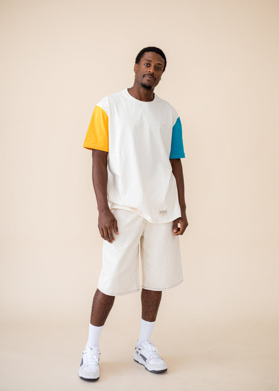 ORGANIC COLOR BLOCK T-SHIRT - ECRU