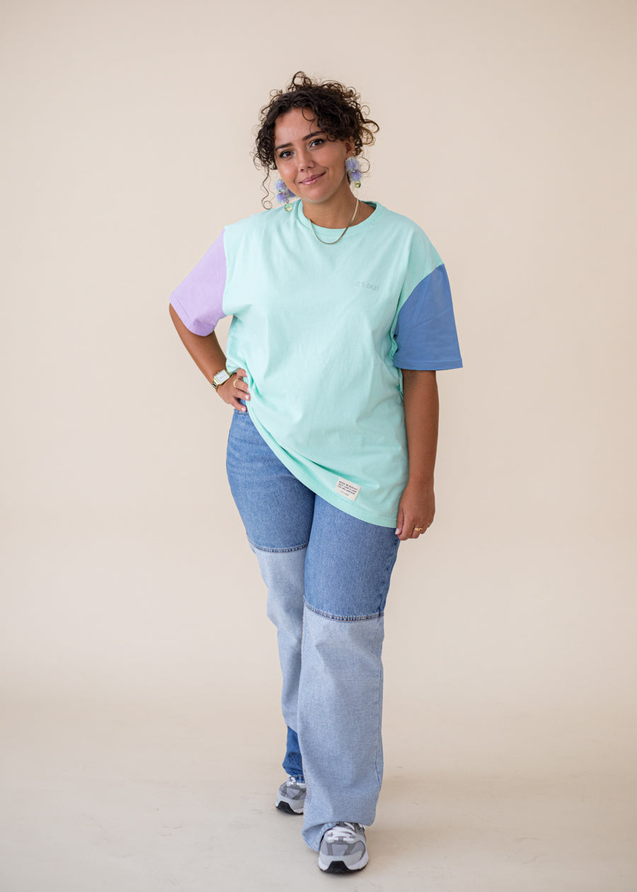 ORGANIC COLOR BLOCK T-SHIRT - MINT