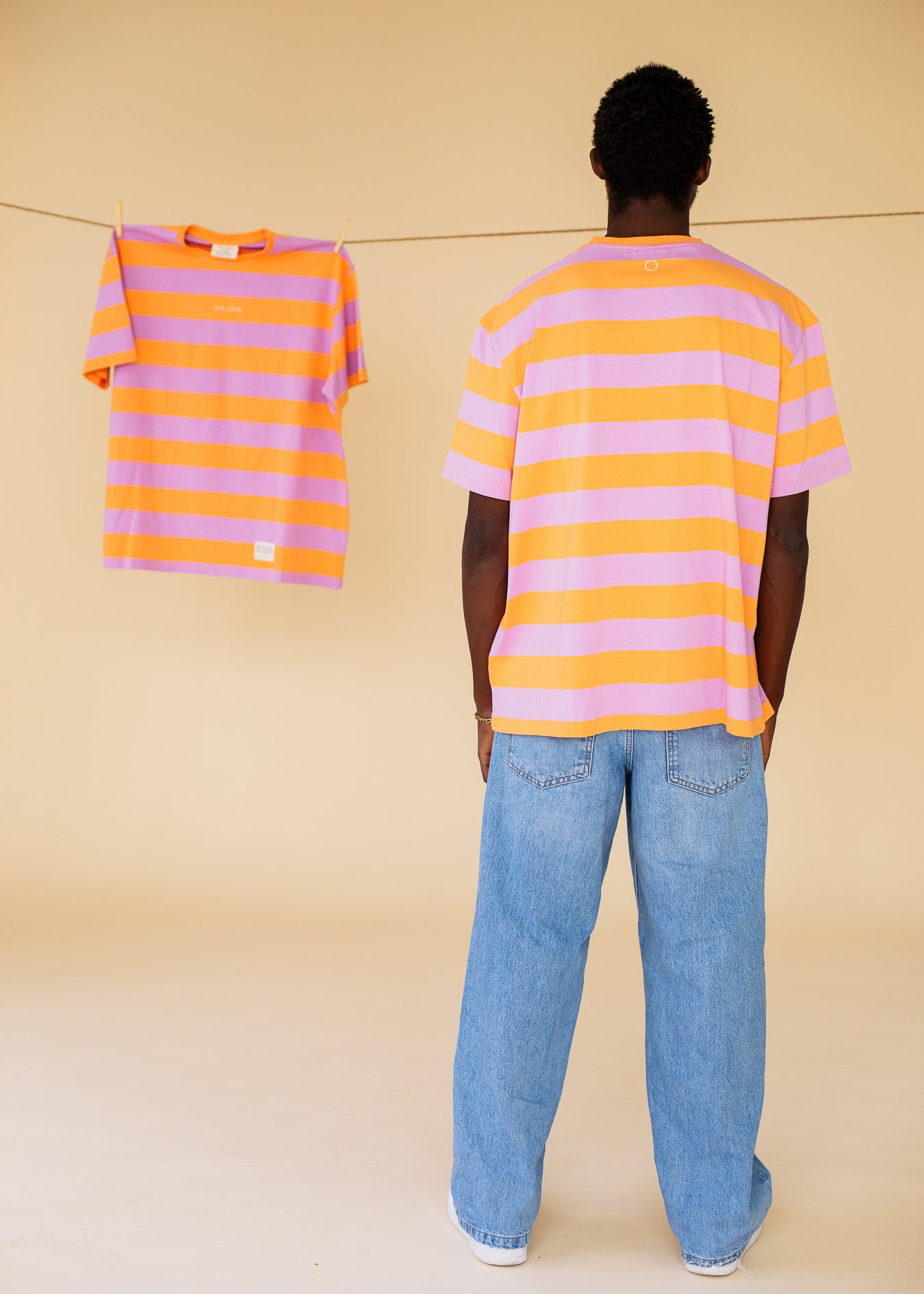 ORGANIC STRIPED T-SHIRT - ORANGE/LILAC