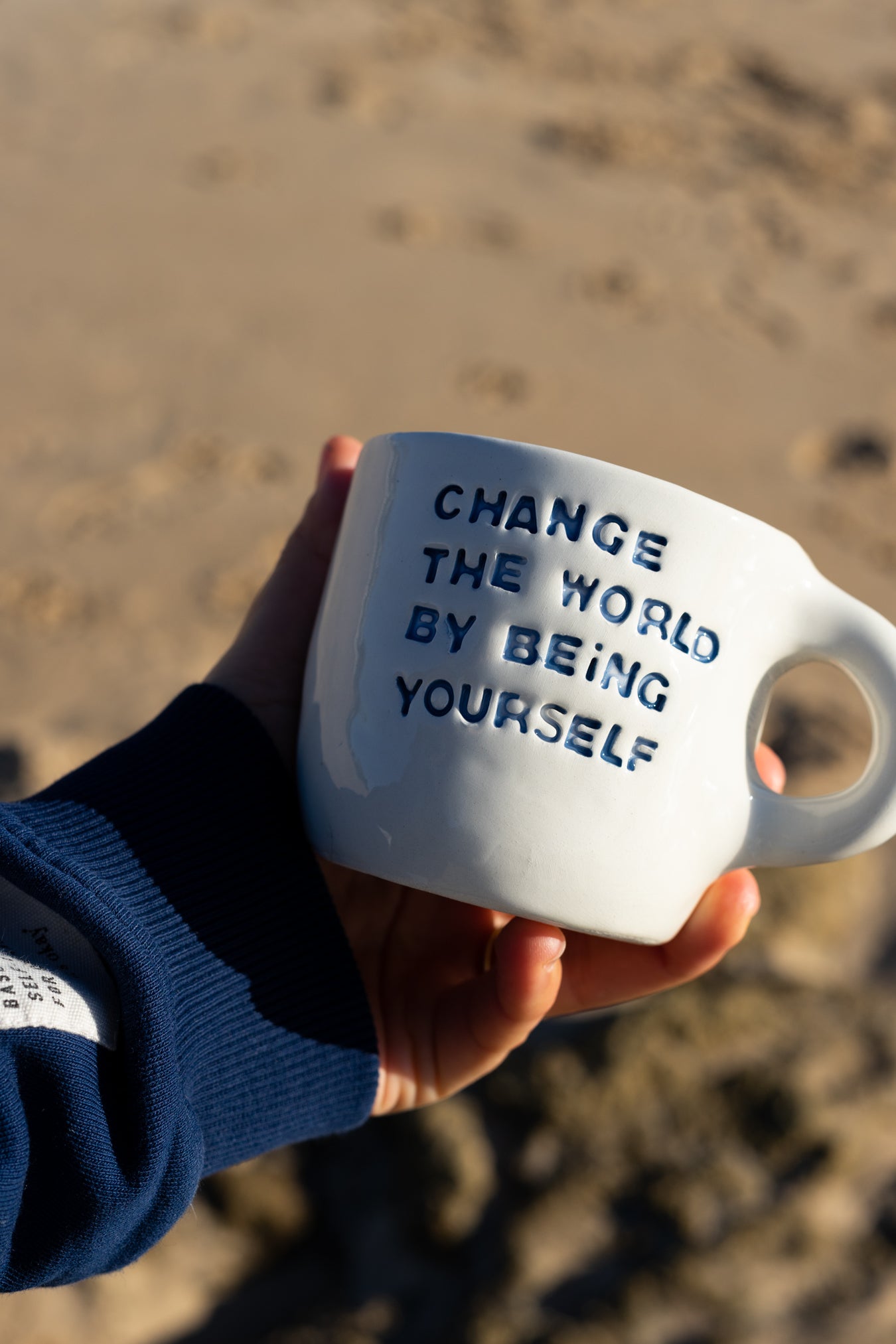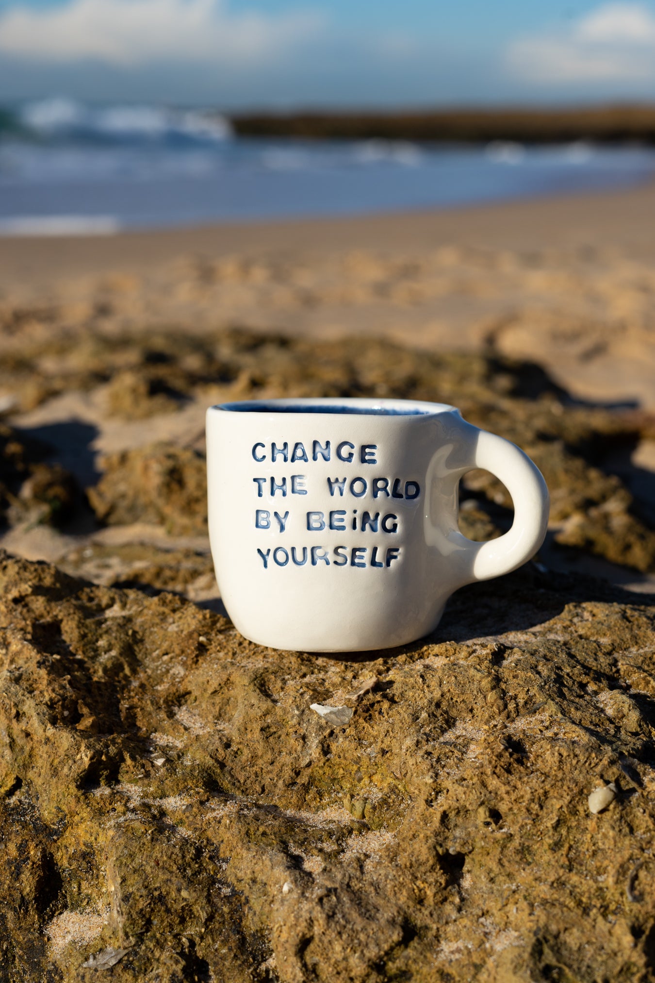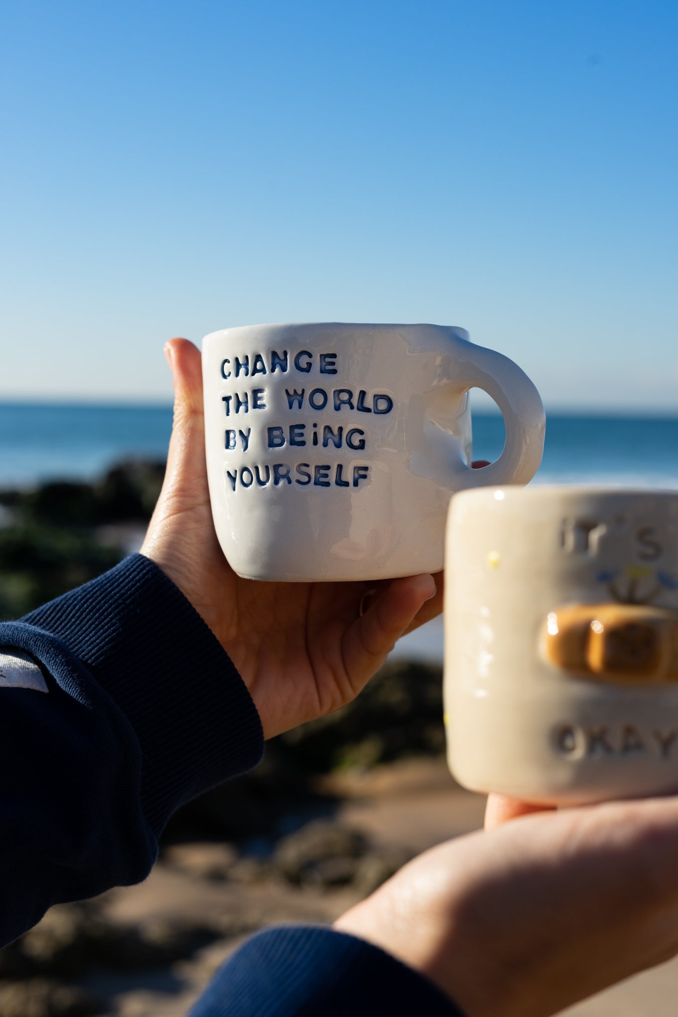 Each mug is carefully handcrafted and hand-painted, making no two exactly alike. Slight variations in shape and color remind us that perfection isn't the goal—it's okay to be exactly as they are.