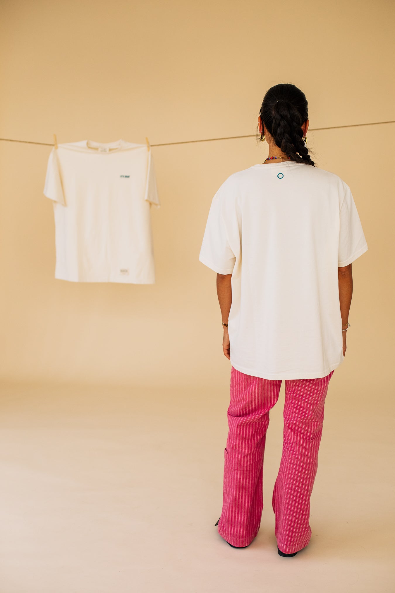 This t-shirt is all about purity. It's made from virgin cotton, untouched by any ink, for a truly natural look. This tee is crafted from 100% organic cotton in North Portugal. This 220gsm is adorned with our embroidered brand name on the front and a circle logo on the back. Check out the exterior label at the bottom, reflecting our values of respect, self-love and love.