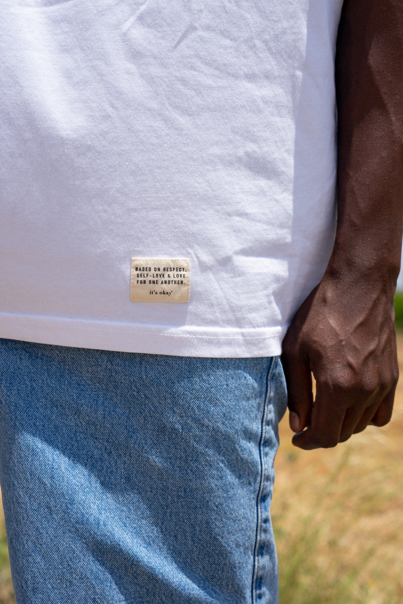 Check the exterior label stitched at the hem — it carries our core values: respect, self-love and love for one another.